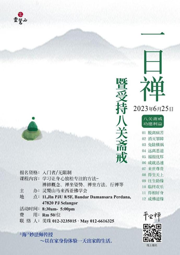 一日禅费用每人RM50,以收到报名费为优先条件录取